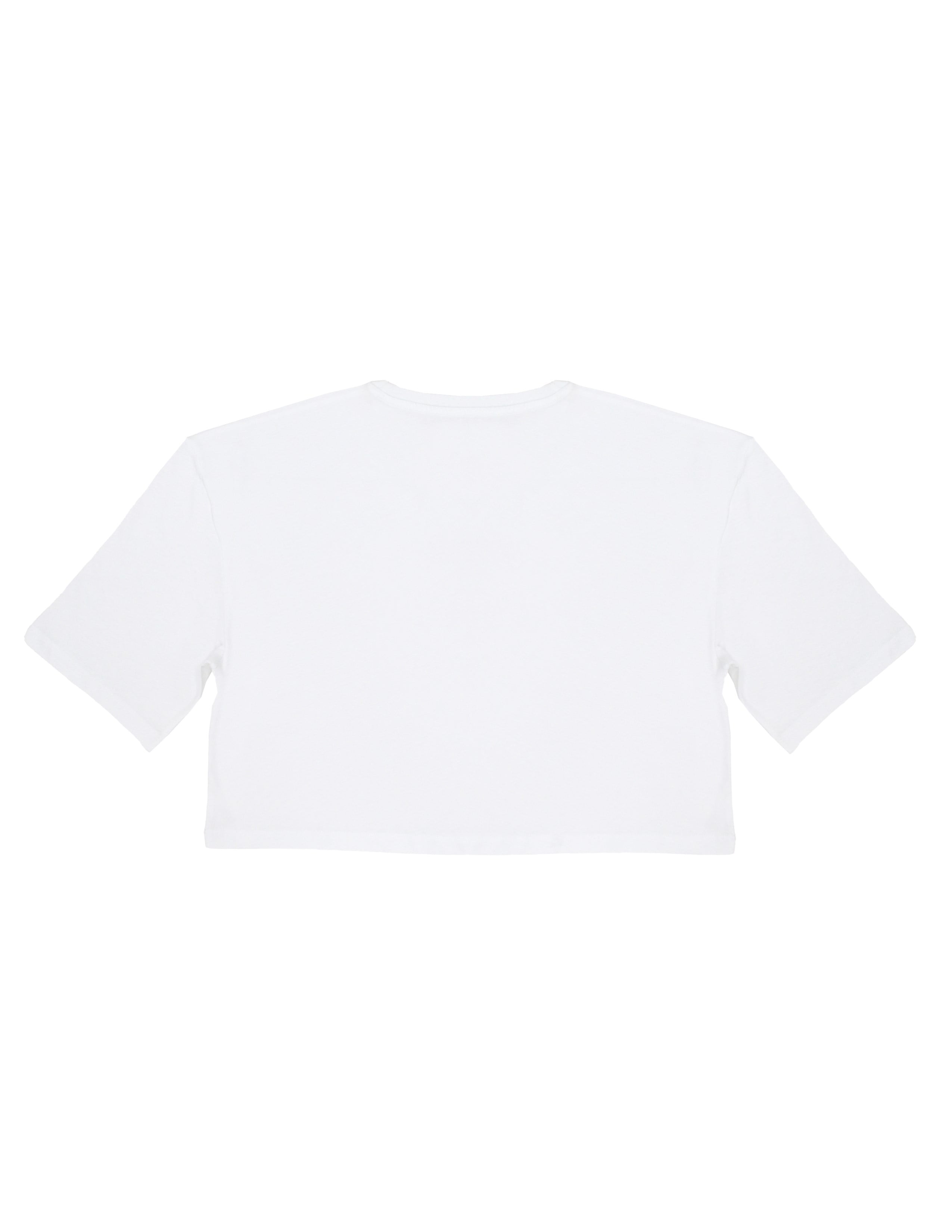 Beyaz,baskılı,bisiklet yaka, kısa kollu loose crop fit t-shirt. GOTS organik sertifikalı süprem kumaş. Maksimum 30°C sıcaklıkta benzer renklerle yıkayınız. Kumaş İçerik: %100 Organik Pamuk