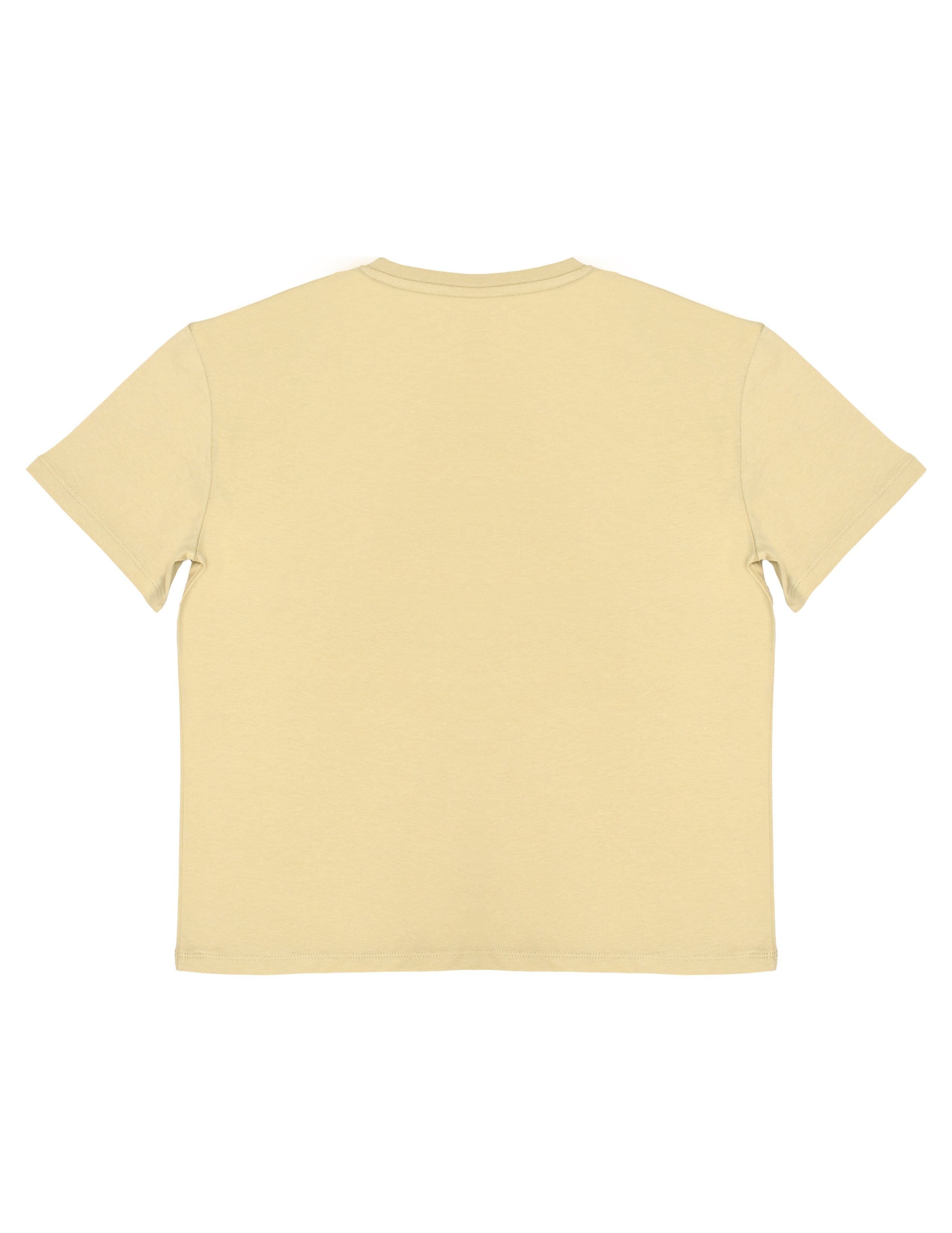 Bej, v yaka, kısa kollu semifitted t-shirt. GOTS organik sertifikalı süprem kumaş. Maksimum 30°C sıcaklıkta benzer renklerle yıkayınız. Kumaş İçerik: %100 Organik Pamuk