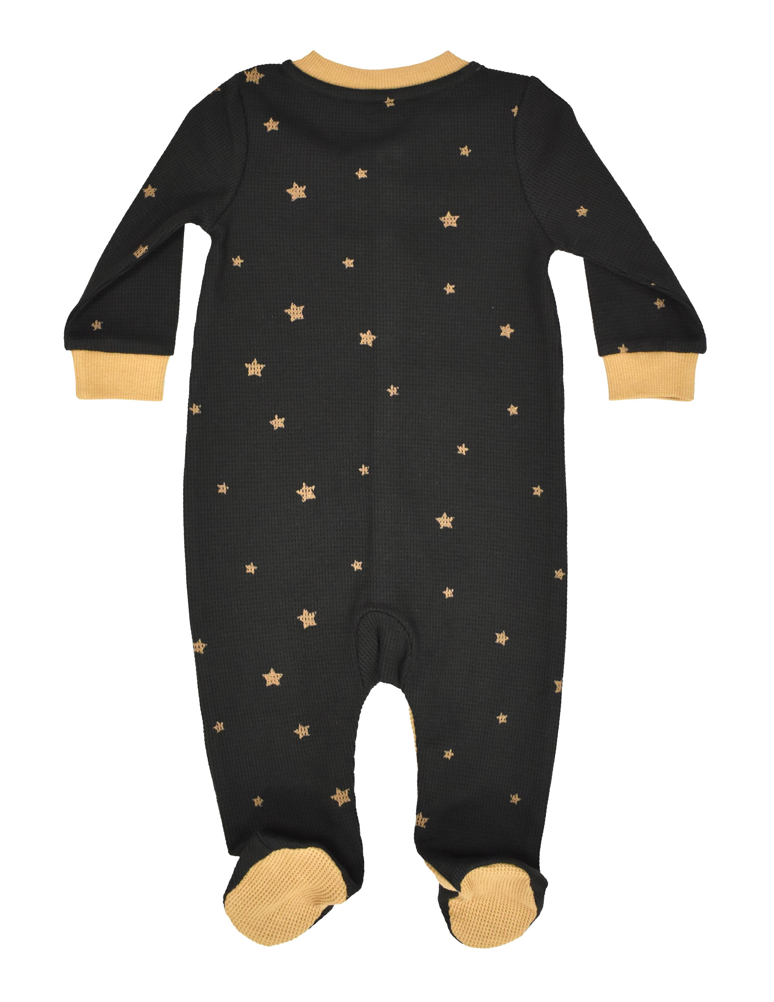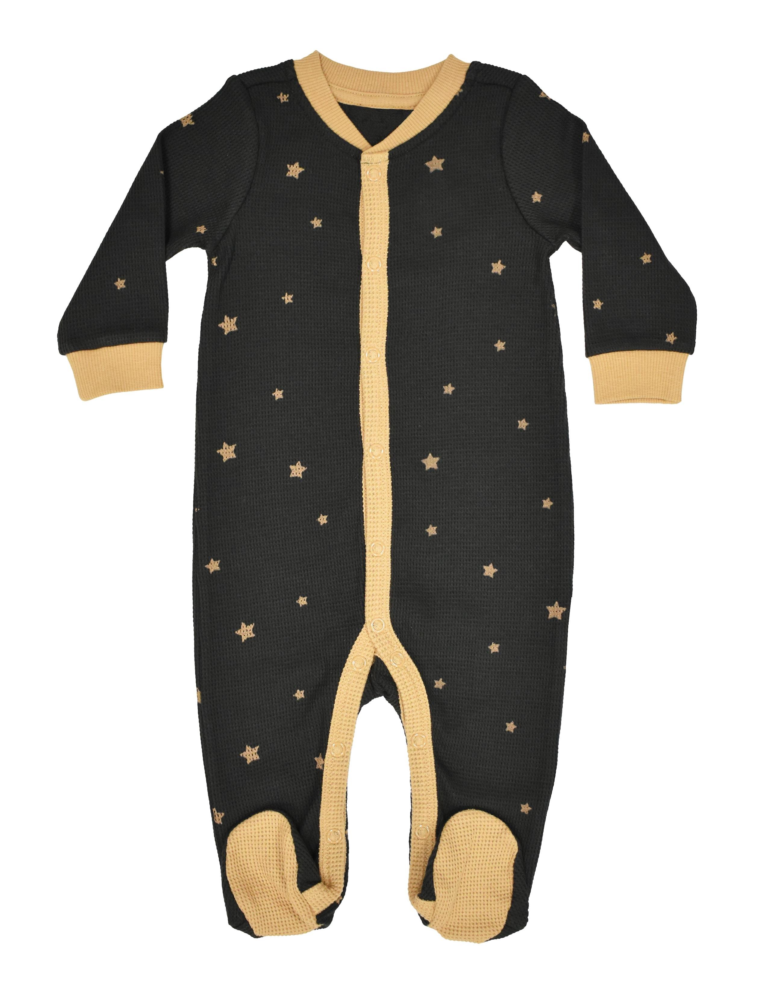 Antrasit,baskılı,önden çıtçıtlı ayaklı tulum. 12-18 ve 18-24 ay bedenleri ayaksız olarak üretilmiştir. GOTS organik sertifikalı waffle kumaş. Maksimum 30°C sıcaklıkta benzer renklerle yıkayınız. Kumaş İçerik: %95 Organik Pamuk, %5 Likra.