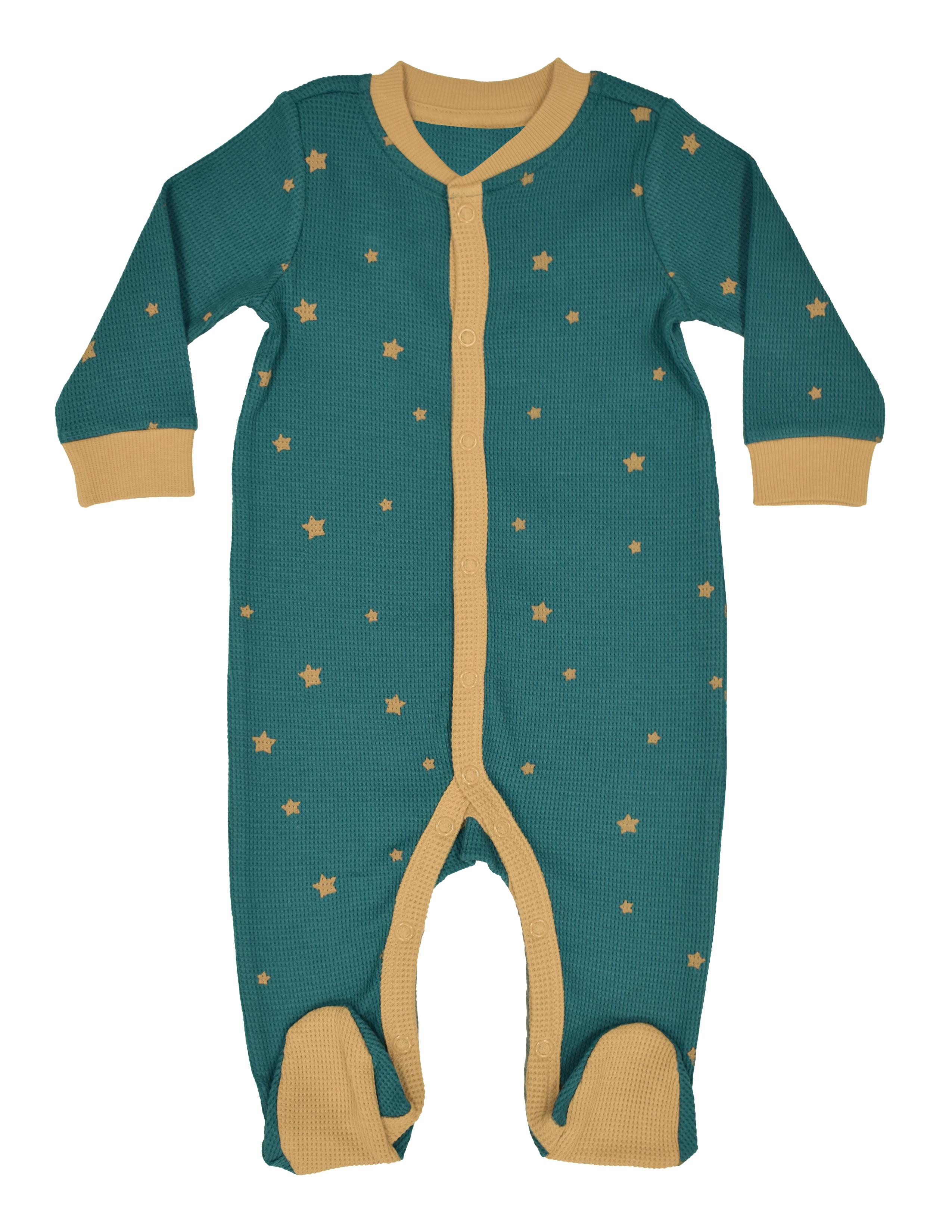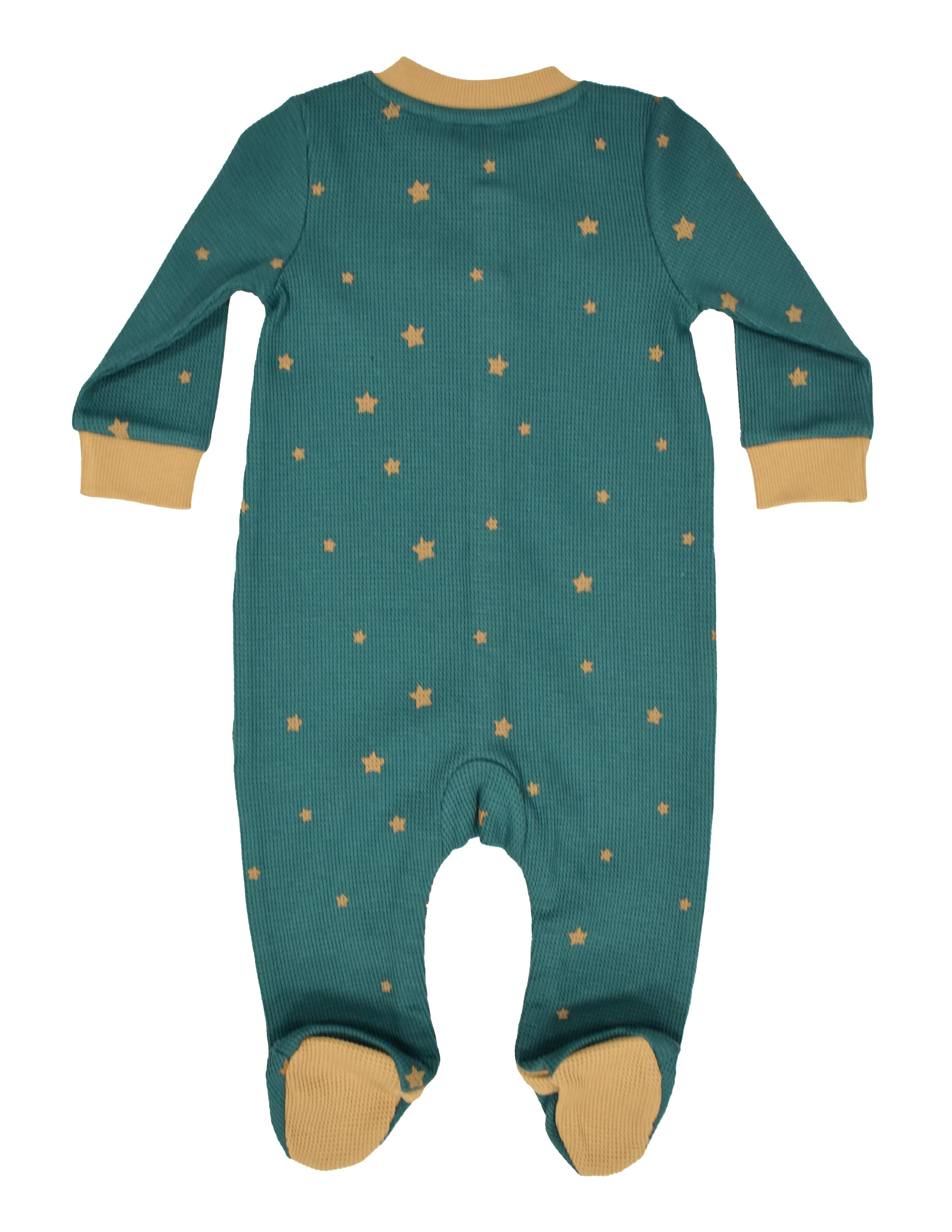 Petrol mavi,baskılı,önden çıtçıtlı ayaklı tulum. 12-18 ve 18-24 ay bedenleri ayaksız olarak üretilmiştir. GOTS organik sertifikalı waffle kumaş. Maksimum 30°C sıcaklıkta benzer renklerle yıkayınız. Kumaş İçerik: %95 Organik Pamuk, %5 Likra.