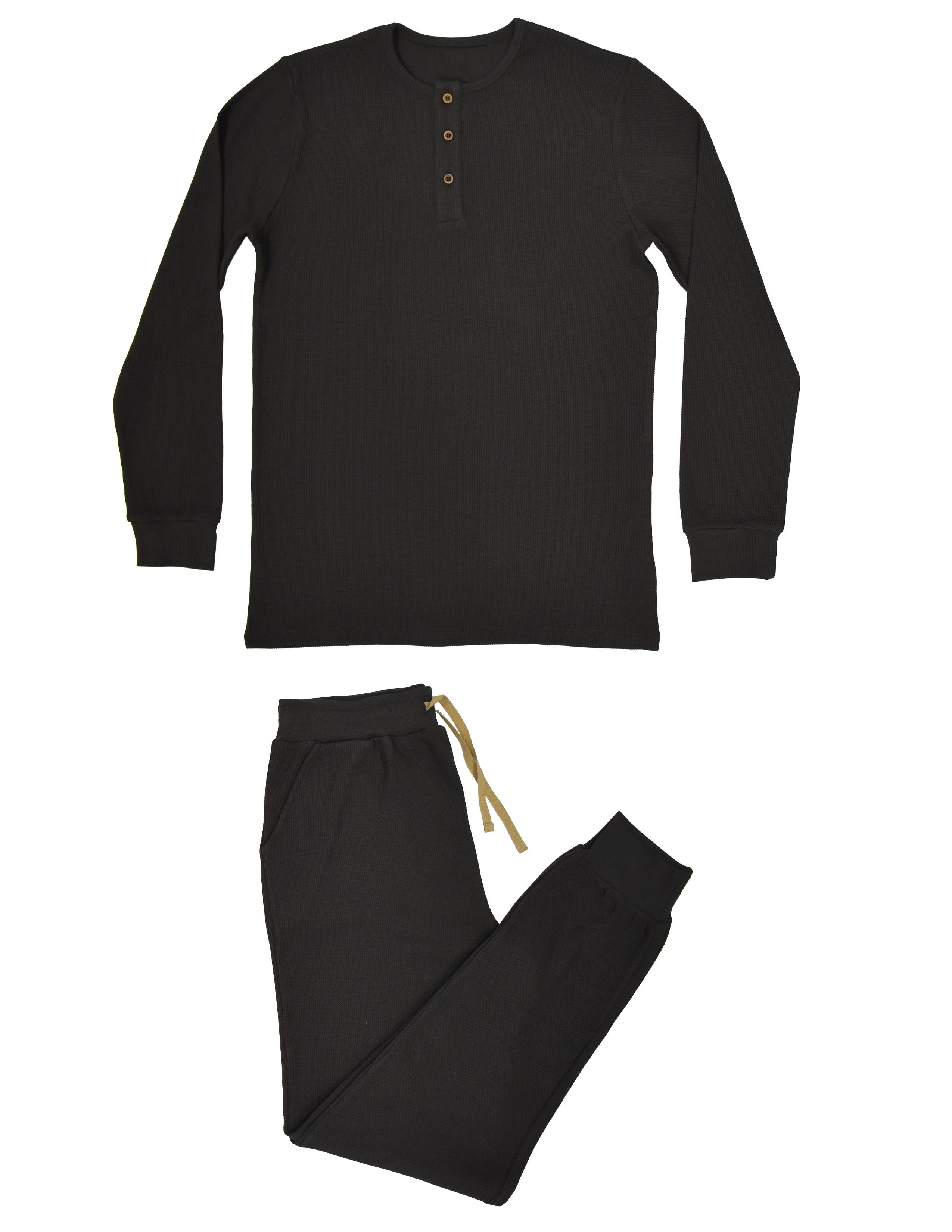 Yetişkin grubu erkekler için üretilmiş, antrasit basic, uzun kollu, yakası düğmeli üst. Beli lastikli,yandan cepli alt pantolon. GOTS organik sertifikalı waffle kumaş. Maksimum 30°C sıcaklıkta benzer renklerle yıkayınız. Kumaş İçerik: : %95 Organik Pamuk, %5 Likra.