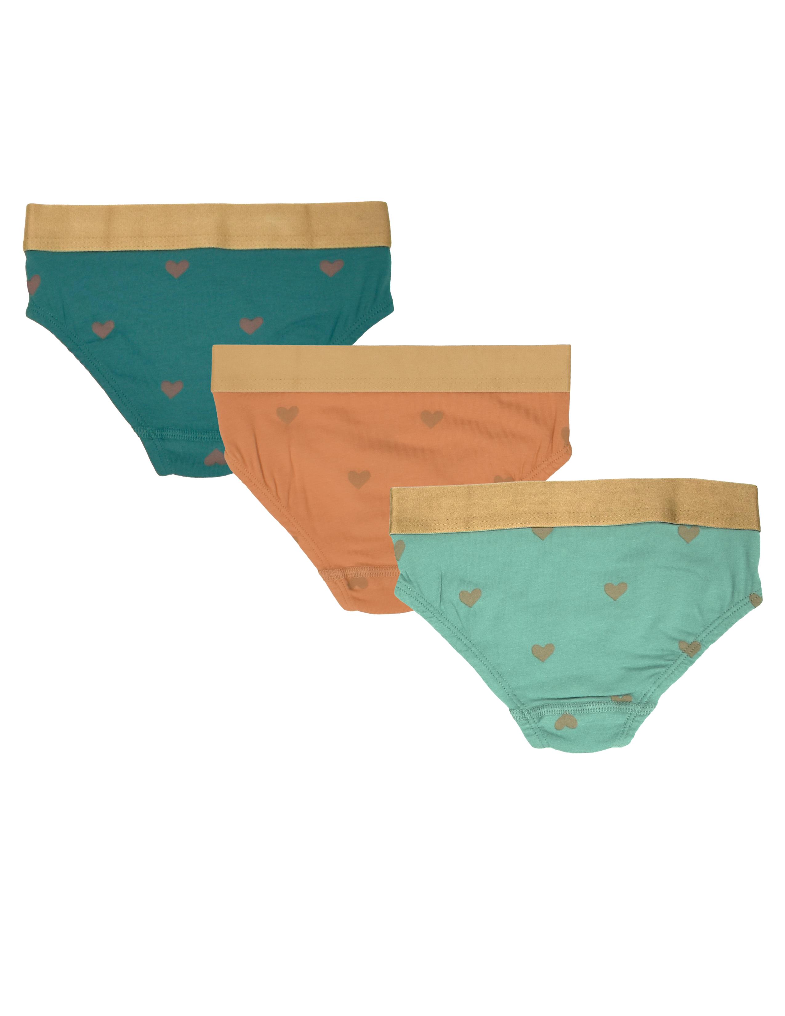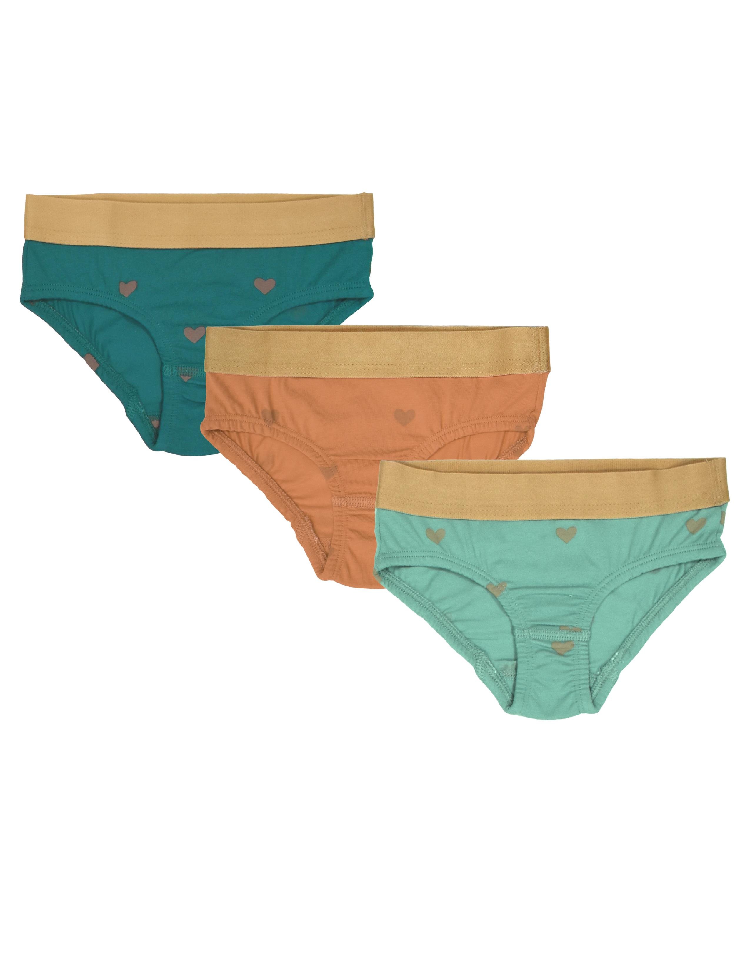 Kız çocuk turuncu-yeşil-petrol mavi slip 3'lü külot. GOTS organik sertifikalı süprem kumaş. Maksimum 30°C sıcaklıkta benzer renklerle yıkayınız. Kumaş İçerik: %95 Organik Pamuk, %5 Likra.