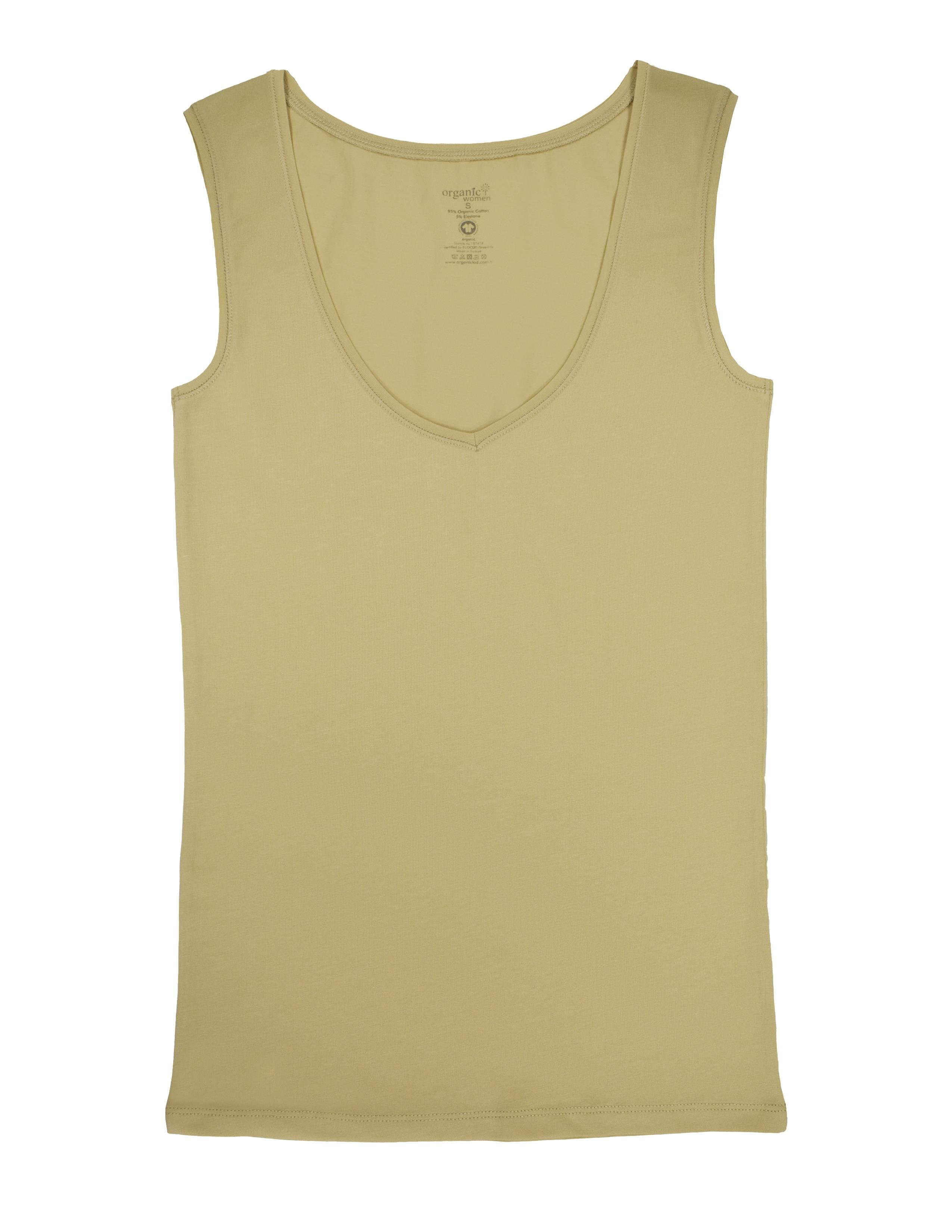 Bej rengi,rahat kalıp,kadın atlet. GOTS organik sertifikalı süprem kumaş. Maksimum 30°C sıcaklıkta benzer renklerle yıkayınız. Kumaş İçerik: %95 Organik Pamuk, %5 Likra
