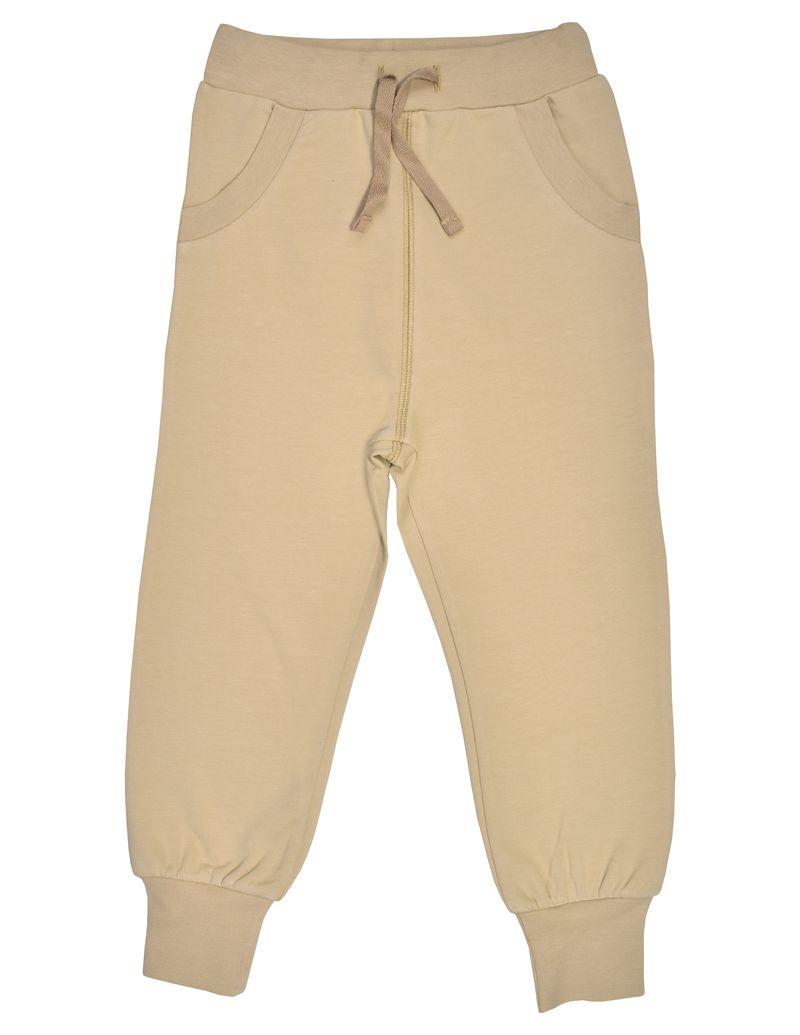 2 iplik beli lastikli, cepli, bej pantolon. GOTS organik sertifikalı 2 iplik kumaş. Maksimum 30°C sıcaklıkta benzer renklerle yıkayınız. Kumaş İçerik: %95 organik pamuk %5 lycra.