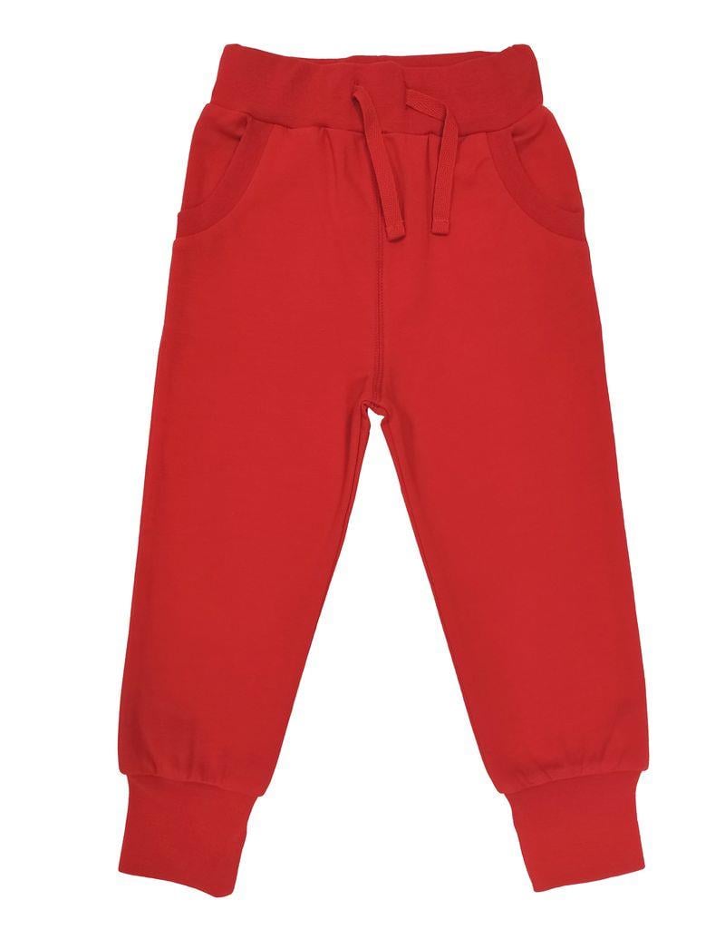 2 iplik beli lastikli, cepli, kırmızı pantolon. GOTS organik sertifikalı 2 iplik kumaş. Maksimum 30°C sıcaklıkta benzer renklerle yıkayınız. Kumaş İçerik: %95 organik pamuk %5 lycra.