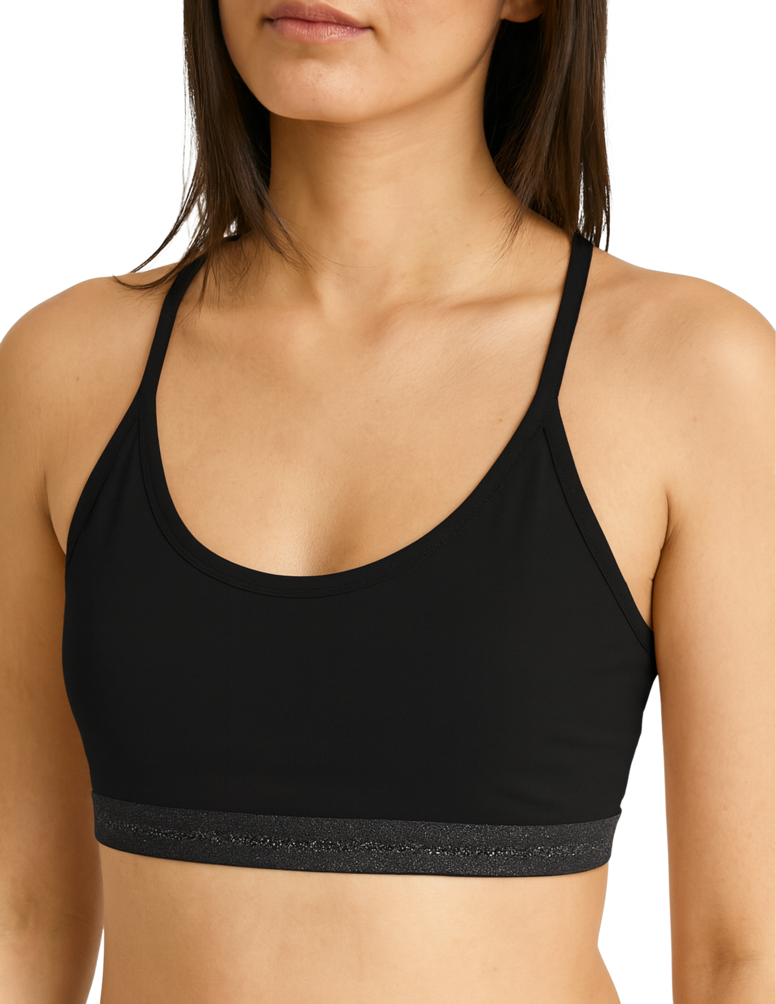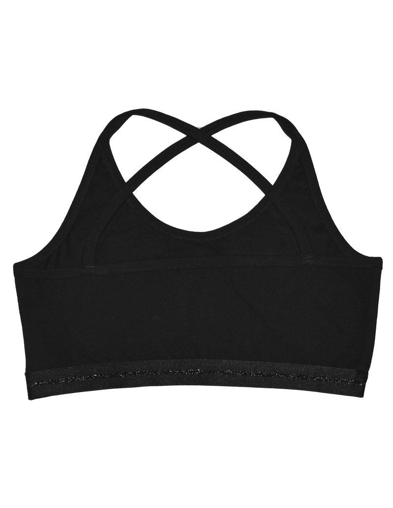 Siyah, arkadan çapraz askılı, alttan yumuşak lastikli crop/büstiyer/bralet. GOTS organik sertifikalı ince süprem kumaş. Maksimum 30°C sıcaklıkta benzer renklerle yıkayınız. Kumaş İçerik: %95 Organik pamuk ve %5 likra.